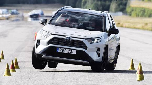 并且在测试过程中,测试人员还要反复进行,逐次提高测试车速,一直到车辆开始出现失控,最终才能确定失控车速数值的可靠性。也就是说,麋鹿测试所记录的速度是车辆在达到失控时的最高车速,而不是在不失控的情况下能否通过测试。所以任何一款车型,只要突破自身麋鹿测试的极限速度,由于测试人员强迫车辆在测试道内通过划定路线,就一定会导致车辆出现更快,更大的转向角度,进而增大负荷转移,最终导致轮胎离地、侧滑等状况的发生。
