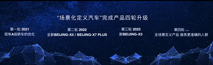 第四轮是全场景化产品。自2023年起,BEIJING汽车将为用户打造系列全场景化产品,服务更精准人群,例如为职场新生代、游戏发烧友、萌宠家长、全职妈妈等人群打造的产品,将为他们提供更独特的解决方案,带来个性化的用车体验。