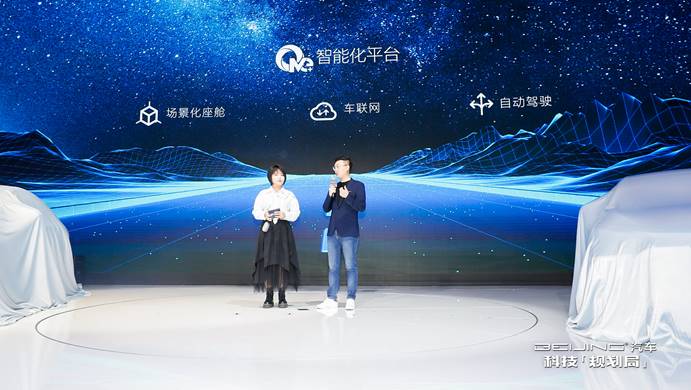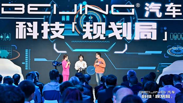 “科技规划局”发布会由北汽营销公司董事长刘诗津和喜剧演员李雪琴、卫蓝大使及著名主持人春妮、资深车评人吴佩、BEIJING汽车工程师张文镝以跨界脱口秀形式呈现,通过结合用户真实用车场景的互动方式,诠释BEIJING汽车“以场景定义需求”的产品技术发展方向。
