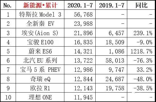 这个结论不是空口无凭,而是有实实在在的数据摆在这里。根据乘联会发布的新能源乘用车销量榜单显示,特斯拉Model3 1-7月累计销量56768辆,遥遥领先于后面的新能源车型。作为造车新势力尖子生的蔚来汽车和理想汽车,他们旗下的蔚来ES6和理想ONE在1-7月累计销量加起来也不过才26266辆,不及特斯拉Model 3销量的一半。而且,特斯拉在国内的销量一路高歌,还是在市场整体萎缩的大背景下实现的。