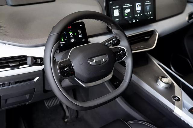 除了外观以外,进入车内也能看到几乎与几何A如出一辙的内饰设计。白灰配色,蜂巢元素,让整车内部简约但不简单;8液晶仪表盘取代了传统仪表盘,悬浮式中控屏搭配上旋钮式挡杆前方的E-rouche触控屏,让车内充满了未来科幻感。