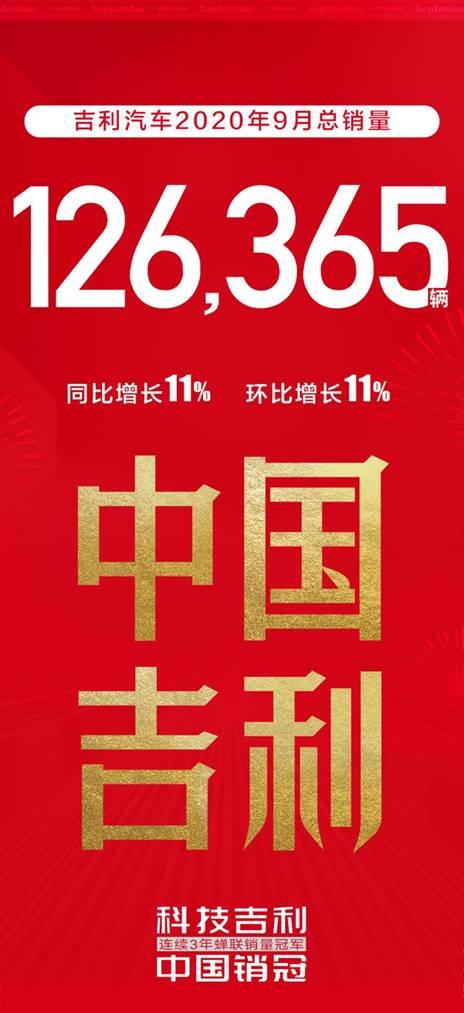 同比、环比连续两月双增长 吉利汽车9月销量126365辆