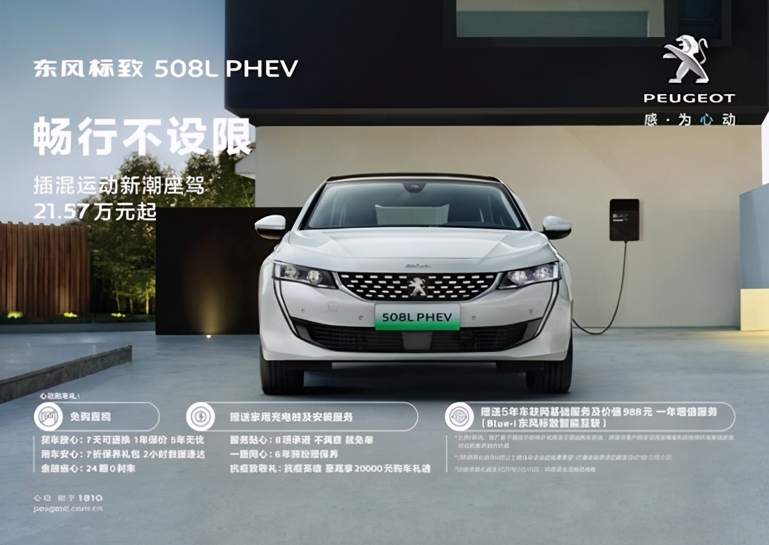 购买东风标致508L PHEV将同时获得心动购车礼,免购置税、车船税,部分城市可获赠绿牌。随车还将赠送家用充电桩及安装服务,及5年Blue-i东风标致智能互联基础服务和1年价值998元的增值服务,并同步享受“五心守护”与24期0利率。援鄂抗疫英雄购车,还将获得至高20,000元购车礼遇。