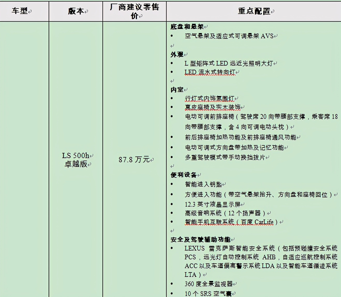 附录:旗舰级豪华轿车新雷克萨斯LS车型配置亮点及价格