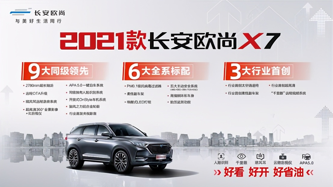 十万用户的共同选择造就了长安欧尚X7热销势能,为了更好地满足当红一代用户需求,2021款长安欧尚X7凭借当红一代的产品实力带来了“九大同级领先、六大全系标配和三大行业首创”,高价值同级领先,安全性更高的全系标配、智能舒适更优秀的行业首创,为用户带来了贴心无忧的智慧行车体验。让10万级的2021款长安欧尚X7拥有20万级的越级驾享体验。