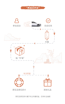养成式开采:用户参与智己汽车官方组织的共创活动,或完成APP上的互动任务,赢得积分“水晶”,使用一定数量的“水晶”抽取“智己矿箱”,赢取各种礼品;购车用户有机会获得数据权益“原石”或“原石碎片”。该部分“原石”占总量30%。