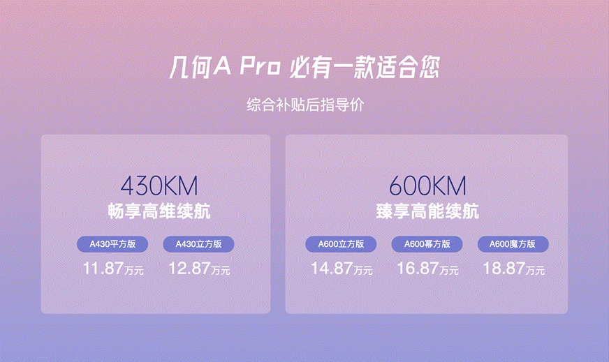 补贴后售价11.87-18.87万元,真高能安全纯电座驾几何A Pro上市