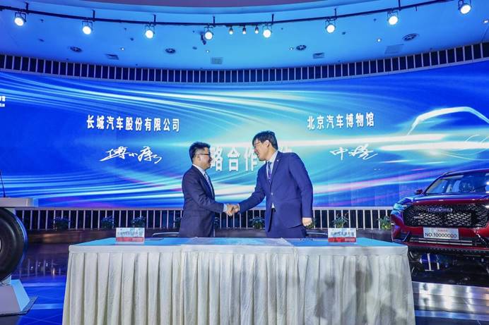 为揭示中国汽车工业奔涌向前的点点滴滴,向社会公众展示中国汽车独特的产业发展魅力,活动现场,长城汽车与北京汽车博物馆正式签约,建立更深层次的战略合作关系,共同保护汽车工业遗产,携手共绘多年来中国汽车砥砺前行的脉络与轨迹,进一步增强中国汽车品牌自信,助力中国汽车工业发展持续进阶。