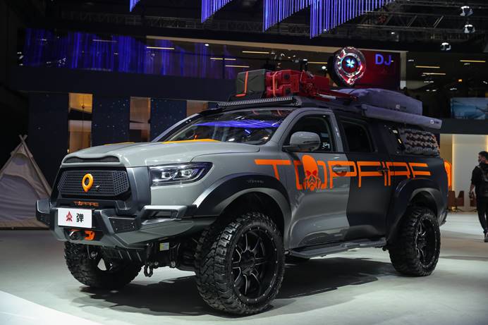 长城皮卡与顶火共创的“火弹”以及与远大谢尔比共创的“龙弹”,作为全新个性化定制车型,也在车展“玩”出真功夫。