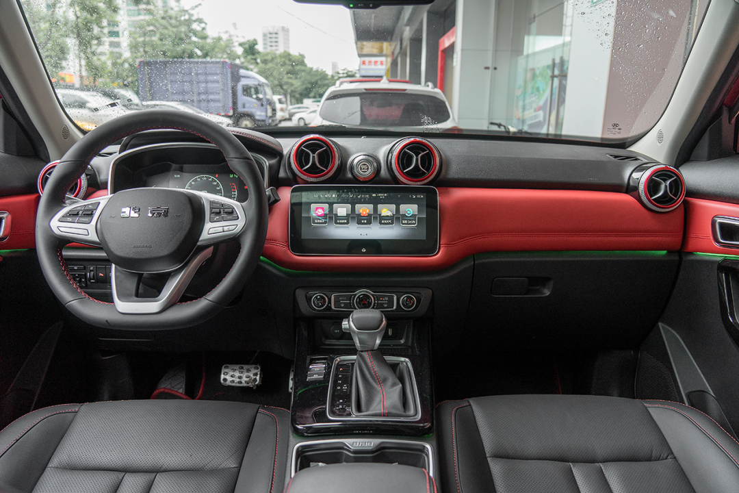区别于外观的硬朗,北京BJ30的内饰可以说是相当柔软了,几乎肉眼所见的地方都用上了软性材质进行包裹,无论是视觉效果还是触感都让人满意。同时,车辆还加入了氛围灯的配备,从氛围上营造出了一定的豪华感,能够加强车辆内部的仪式感。