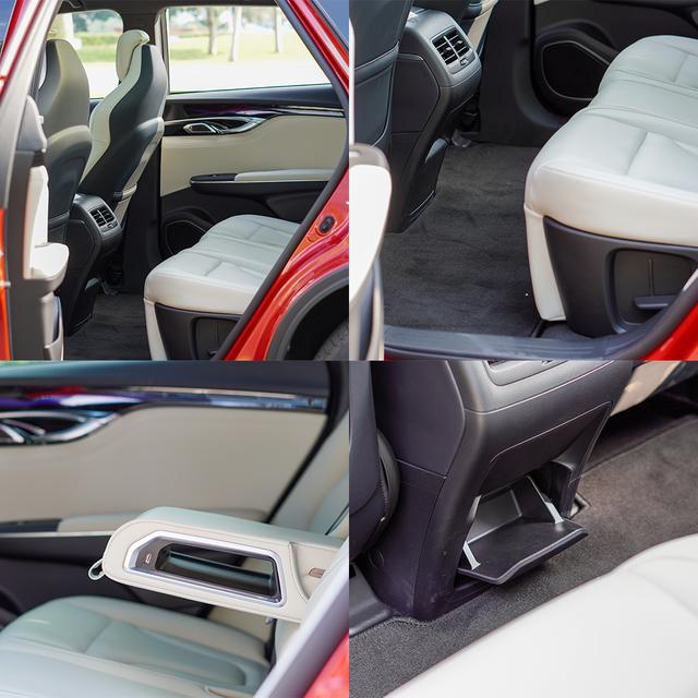 作为一辆中型SUV,还得要说一下广汽蔚来HYCAN 007的空间表现,它长宽高分别为4879*1937*1680mm,轴距为2919mm。光看车宽和轴距,这跟广汽广汽新能源Aion LX和蔚来ES6的尺寸相当接近。在前排储物部分,广汽蔚来HYCAN 007中控下方有一个较大的储物空间,可以放置饮料水壶等杂物;在后排乘坐空间部分,以笔者175cm的身高来看,前排座椅调好合适坐姿以后,后排位置的腿部基本还有两拳的余量,而头部也有一拳距离左右,整个后排乘坐空间非常大(由于拍摄只有我一个人,则在图片上无法演示)。