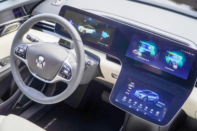 目前而言,倒不是说屏幕更多、更大就一定等于更好,只是我见多了“分辨率极低的大屏”,较少见到像广汽蔚来HYCAN 007这样的“高分辨率大屏”。另外,广汽蔚来HYCAN 007三屏之间可提供“飞屏”、“分屏”等交互玩法。不难看出,广汽蔚来HYCAN 007的三联屏在形态上接近于Aion LX的双12.3英寸屏,但略做了一些改动,增加了一些新意。