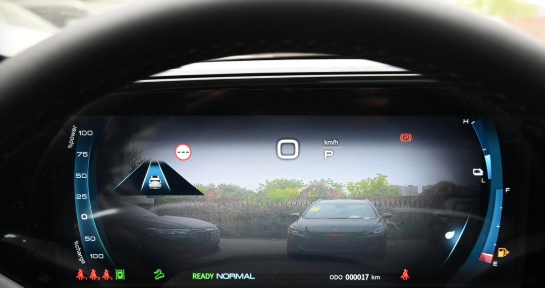对于皓极马赫双擎混动版的智能配置,兵哥有两个印象比较深的地方,一个是AR增强仪表导航,另外一个则是AR智能尾门。新车搭载了尺寸均为12.3英寸的全液晶仪表盘和中控屏幕,匹配WindLink OS车机系统,有着各种各样的功能。而AR增强仪表导航是新势力车型比较主打的实景导航,它的实现则是通过在方向盘上设置,让兵哥感到新鲜的地方在于实景在仪表盘上显示,而且清晰度不错。AR智能尾门的使用方式同样新颖,它是通过尾部左下方的AR投影实现,只需要将脚放在投影的下方,尾门便可以打开。